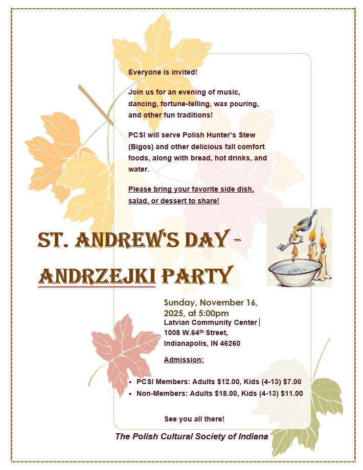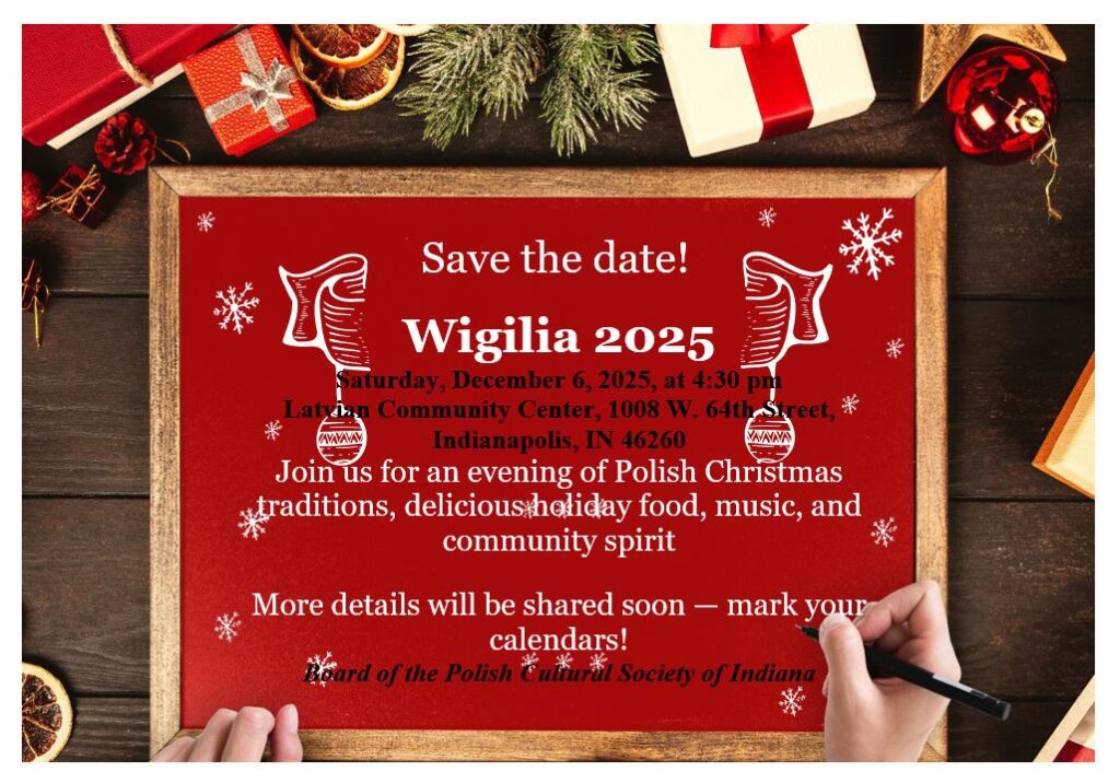 Dear Friends, Please save the date for our annual Polonijna Wigilia – Polish Christmas Eve Celebration, hosted by the Polish Cultural Society of Indiana. Saturday, December 6, 2025, at 4:30